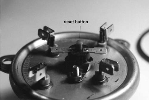 This is a classic symptom of a machine that needs to be descaled. See the Maintenance Section under Monthly for descaling procedures. Some machines have a resettable fuse. If you have a resettable fuse, you won't have to replace the fuse, just take the bottom off and push the red button back down and descale your machine. That should fix the problem. On newer machines you don't have to take the base off. There is a rubber plug on the bottom that you remove to reset the fuse. Remove the plug and take a pencil (eraser end) and push the red button down till it clicks. The fuse is now reset. The Europiccola and Professional owners , who don't have a resettable fuse, will have to perform the following tests. It's possible that the resettable fuse is also bad so you should do the following test just like on a regular fuse. Make sure that the red button is pushed down for the test. Do the above check for A/C power. If you have power at the outlet, then locate the fuse. The fuse is on the bottom of the heating element. It's plastic with two terminals coming out of it. A resettable fuse is in the same place but has a red reset button in the middle of the fuse. Unplug the wires from either end of the fuse, and attach each lead from the multi-tester to each end of the fuse. Either end is fine, there's no polarity condition here. If the fuse is blown, you'll get no reading at all (OL) on the multi-tester scale . If no reading, the fuse is blown and you'll need to replace the fuse. The needle on the analog testers, if the fuse is bad, will not move at all. It will sit on the left side of the meter. If you have a reading of approximately .3 OHMS , it's not the fuse, and you can go down to the next section for more troubleshooting hints. On analog testers, the needle will move to the right on the scale, if the fuse is good and it will lie just to the left of the "0". If the fuse is bad, remove the retaining screw from the fuse and remove the fuse from the bottom of the heating element. You'll have to bend the terminals on the new fuse, or the bottom won't fit on. Use some needle nose pliers to accomplish this. I think on the Professional model, you won't have to bend the terminals. Just hold the fuse in one hand, and gently bend the terminals in the direction of the mounting tab. There is also a small positioning tab on the bottom of the fuse that goes into a hole in the bottom of the heating element. Put the locking washer on first, then tighten the retaining screw down. Make sure the positioning tab is in the hole before you tighten the screw down. Connect the wires back to the fuse. Assemble the bottom back in, and fill the boiler back up with water. Turn the machine back on. Chances are you will have fixed the problem. If not, you have another problem. If the fuse was blown, do an immediate descale of your machine after installing the new fuse. The new fuse will also blow if you have a build up of deposits on your heating coil.