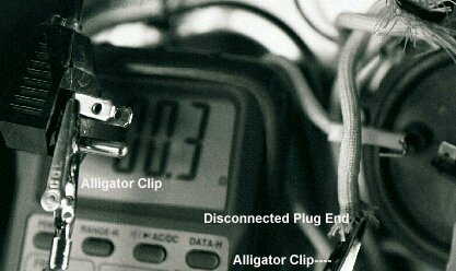 Your multi-tester should be on the continuity or resistance measurement settings for all tests. The black lead goes into the COM (-) jack and the red lead goes into the OHM (+) jack. The symbol for the OHM looks like a horseshoe on the front panel. If you're using an analog tester, the doubler switch should be on the V-OHM-A setting. Not the V-A/2 setting. The selector switch should be on the RX1 position. You should always adjust your needle to the "0" ohms. Do this by touching both leads together and use the OHMS adjustment dial. These instructions are pretty common to all analog testers. You should never get a reading with an analog tester that the needle moves to the extreme right of the scale, past the "0". With the digital displays, you won't have to do the previous adjustment. Lastly, read your instruction manual and go by that if it differs from the above instructions. Just setup your tester for a continuity/resistance reading and you'll be O.K. One last comment. When you are doing your tests, make contact with the test probes or alligator clips only on the component or area of the component that you want to test. For example, if you are testing for a bad power cord, make contact with only one prong on the plug and one of the disconnected leads. Do not touch any other metal surfaces. If you are testing the switch, make sure you are touching only the two terminals of the circuit you want to test. If you don't, you will not get a good reading from your multi-tester.