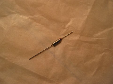 NOTE: On some older Pavonis a different kind of fuse was used in the machine. A thermal fuse that was installed in the circuit. One of the places the fuse was in went in a cavity in the middle of the heating element. The other place was on the surface of the element under a hold down strap. This fuse may be a little harder to test to see if has blown because it's a inline fuse. That means that it is hard wired in the circuit. No solderless terminals to pull off. To test it, you would have to disconnect it from the the circuit. Most Pavonis with this type of fuse have at least one terminal block that a fuse lead is connected. Disconnect the fuse wire going to the terminal block or blocks. If both leads from the fuse go to terminal blocks just disconnect each lead and test it as stated in the above paragraph. If only one lead has a terminal block disconnect it from the terminal block and disconnect the lead going to the heating element and then you can test it. I don't know if Pavoni still makes the replacement fuse. A suitable replacement (SKU#2701322) can be found at Radio Shack stores. It's a 262.4� F (128� C) fuse. Be careful on installing this in the machine. It must not touch the cavity or heating element without some type of insulation around it or you could get shocked and definitely you are going to create a short in the machine. It's like touching a bare live wire. You'll blow a fuse and probably destroy the switch in the machine. Try and reuse the existing silicone insulation that came with the original fuse. Try not to use crimp on butt connectors on the fuse leads. Crimp on terminals are not used for solid wire, just stranded wire. Soldering is not advisable since you could blow the fuse in the process of soldering it to a terminal or another wire. The soldering gun produces too much heat. If you do apply solder to the butt connector after crimping, test the fuse afterward for continuity. Try to solder as far away from the fuse as possible. You could use some alligator clips as heat sinks while soldering. Just put the alligator clips on the fuse wire between where you solder and the fuse itself. This may help dissipate the heat away from the fuse. You'll have to use a terminal block if one isn't already on your machine. Here is a link that describes all about thermal fuses. You need Adobe Acrobat Reader to view it. Lastly, if you are looking for this type of thermal fuse on your machine and can't find it, it's probably because the prior fuse blew and the previous owner didn't replace it. Time to take a trip to Radio Shack. You'll also need to purchase some silicone insulation.