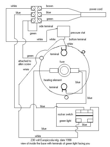 This is a rough wiring schematic of a 230 volt Europiccola. Mfg. date March 1998.