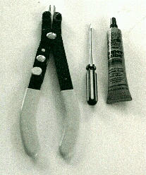 Shown are the retaining ring pliers, small screwdriver and ViperLube®.