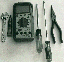Adjustable wrench, ViperLube�, Multitester, large philips screwdriver, flat tip screwdriver, and needle nose pliers